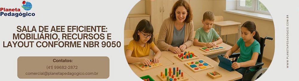 Na Planeta Pedagógico, você encontra mobiliários escolares acessíveis, jogos pedagógicos inclusivos, kits de robótica educacional e materiais especializados que atendem às exigências da NBR 9050 e contribuem para a construção de salas de AEE completas e funcionais. Acesse nosso site clicando aqui e descubra como transformar sua escola em um espaço ainda mais inclusivo!